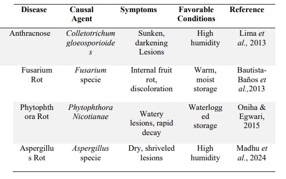 Table 1 of the original paper - Common postharvest diseases of Carica papaya
