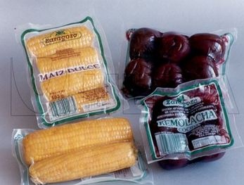 Potatoes, beetroots, corn and carrots vacuum packaging in thermoforming with flexible film able to stand the sanitization process